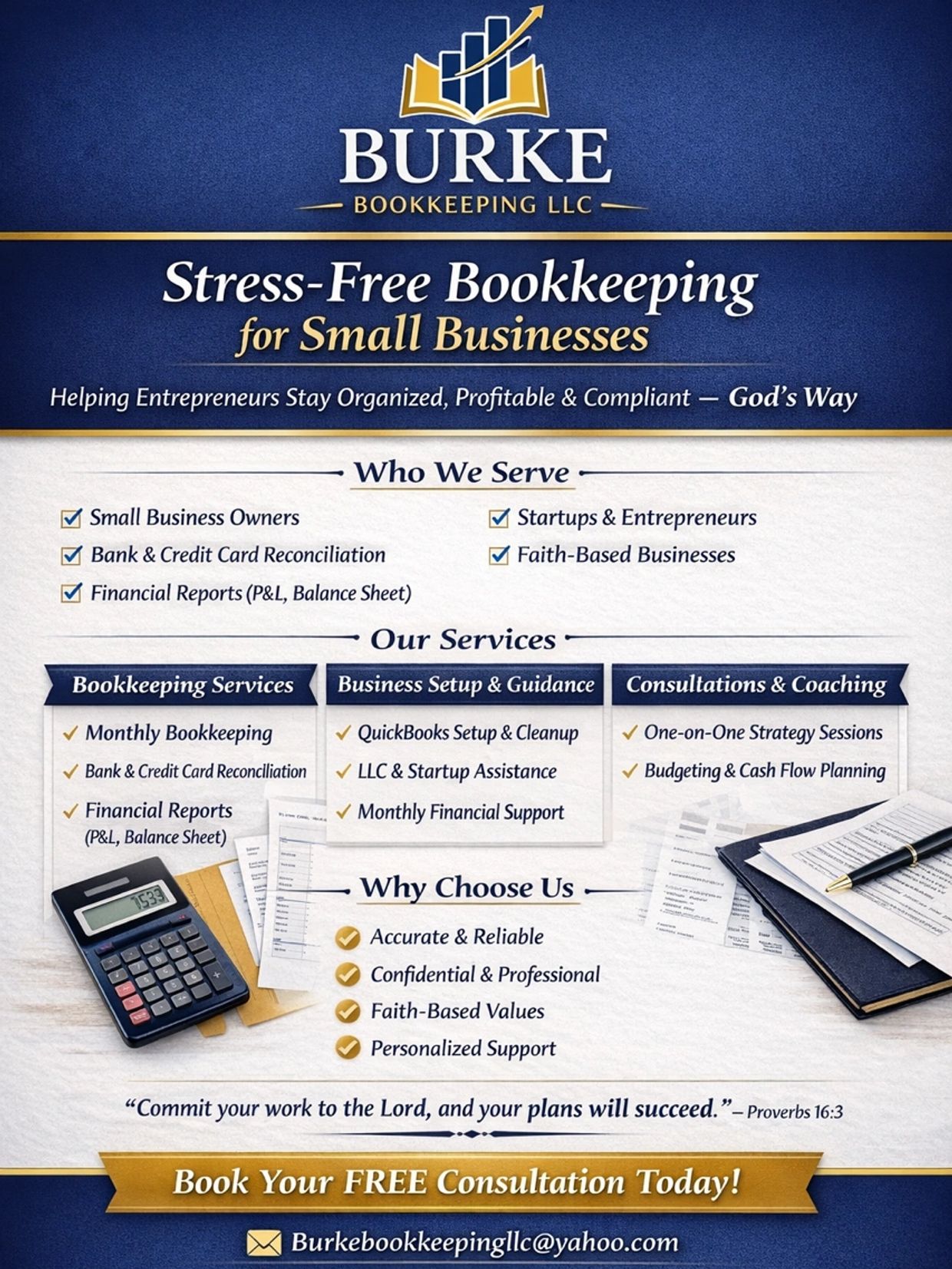 Burke Bookkeeping, a Mississippi-based business providing professional bookkeeping and public notary services to individuals and small businesses. With a strong foundation in accounting and years of hands-on experience, Rosilyn is committed to helping clients stay organized, compliant, and financially confident.